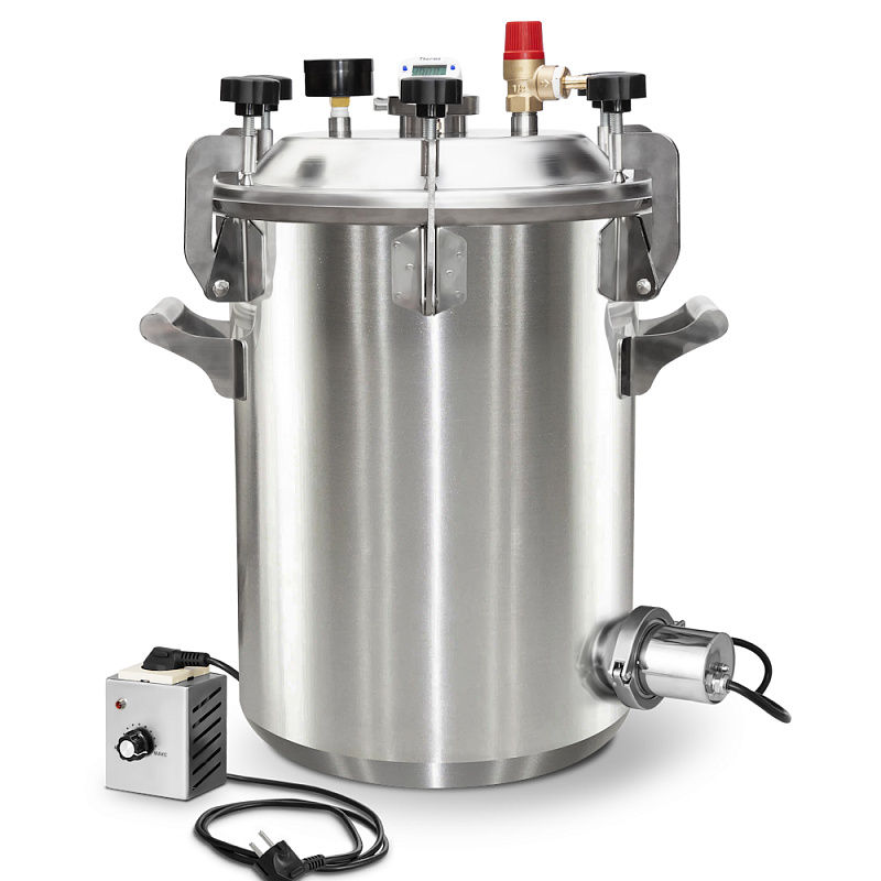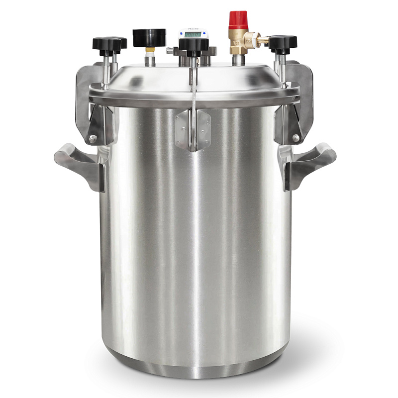 Крышка прочно фиксируется, обеспечивая герметичность. Все вышеперечисленное делает наш автоклав на 100% безопасным и поэтому одним из лучших на рынке.