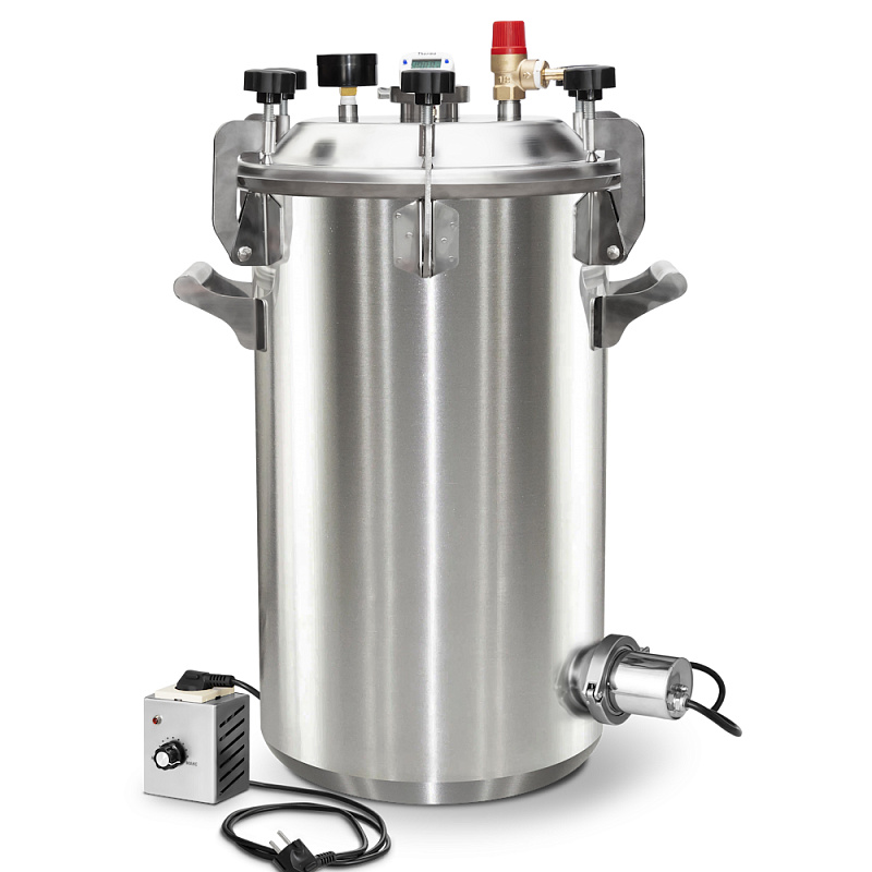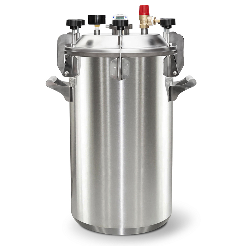 Крышка прочно фиксируется, обеспечивая герметичность. Все вышеперечисленное делает наш автоклав на 100% безопасным и поэтому одним из лучших на рынке.