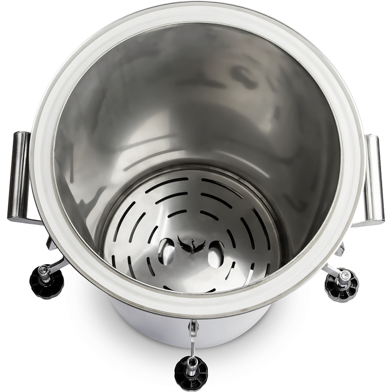 Для устойчивости загружаемых банок на дно автоклава используется фирменное фальшдно с удобными ручками, благодаря которым его разместить или достать из емкости.