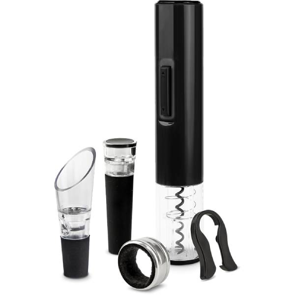 Делает процесс откупоривания бутылки вина легче и эстетичнее. Зафиксируйте штопор на горлышке бутылки, предварительно срезав фольгу. Удерживайте кнопку «вниз», чтобы извлечь пробку, а затем кнопку «вверх», чтобы снять пробку с винта. Питание осуществляется с помощью четырех батареек типа АА, которые расположены под крышкой в верхней части устройства. Емкости аккумулятора хватает для откупоривания 30-60 бутылок вина.