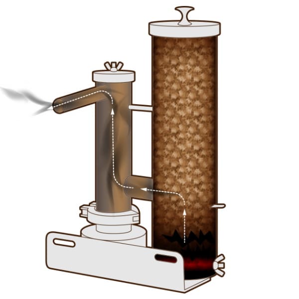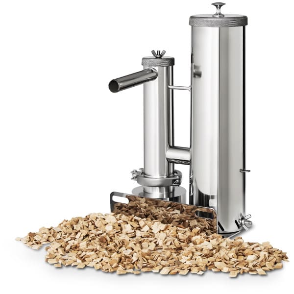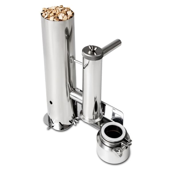 Производительность Дымогенератор высотой 33 сантиметра вмещает до 500 граммов щепы и способен на одной загрузке дымить в течение 5 часов.