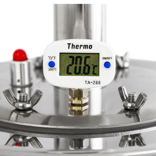 установлен на крышке бака, что позволяет контролировать температуру восходящих спиртовых паров.