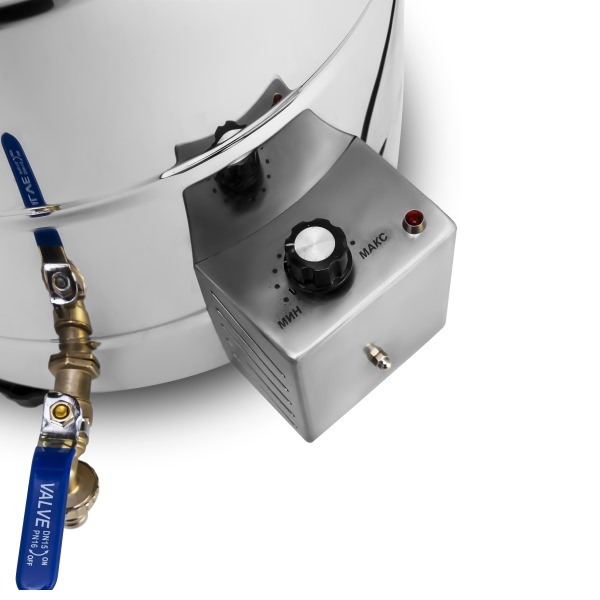 ТЭН оснащен плавным регулятором мощности, с помощью которого вы контролируете мощность нагрева и температуру браги.