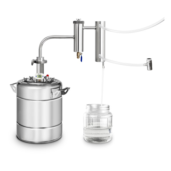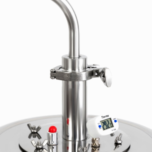 На смену биметаллическому термометру пришел электронный, а значит, что точность измерений стала выше. Этот простой в конструкции, но надежный дистиллятор помещается между плитой и вытяжкой, не занимая много места на кухне и обеспечивая комфортное использование.