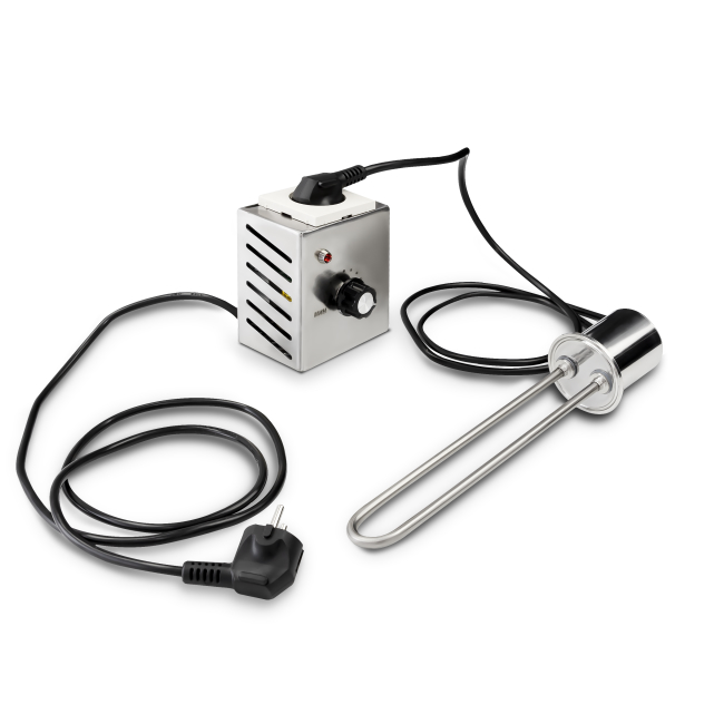 ТЭН оснащен плавным регулятором мощности, с помощью которого вы контролируете мощность нагрева и температуру браги.