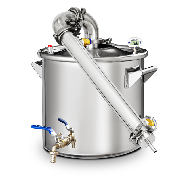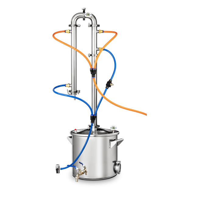 Перегонный куб оснащен всем необходимым для комфортного и безопасного использования: