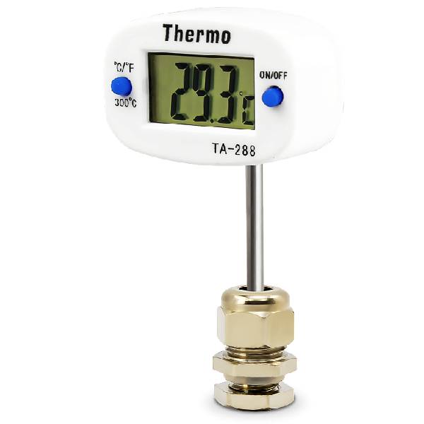 Гермоввод (ниппель) устанавливается в элементы самогонного аппарата, предназначен для крепления цифрового термометра. Деталь прочно фиксируется прижимной гайкой с силиконовой уплотнительной резинкой.